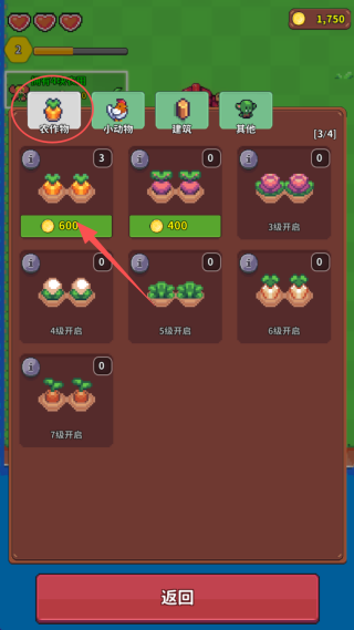 2、在商城中选择农作物”分类,找到农田”选项并点击购买。