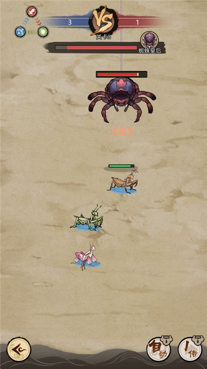 第4步:自动激战 战斗开始后,螳螂将自动进行攻击与走位,策略布局决定胜负走向!