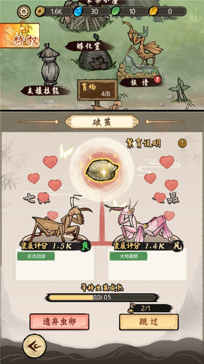 第2步:孵化虫茧 点击虫茧,见证全新螳螂破茧而出,收获你的下一位得力战将!