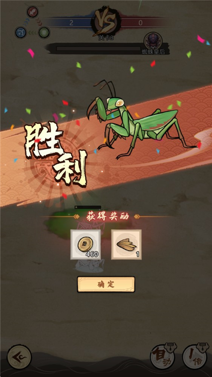 第5步:赢取丰厚奖励 成功击败所有敌人即可通关,解锁金币、材料及稀有螳螂碎片等奖励。