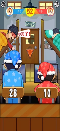 1、这款游戏十分考验玩家的反应能力和速度,主角在舍友睡觉的时候开始激烈的比拼,