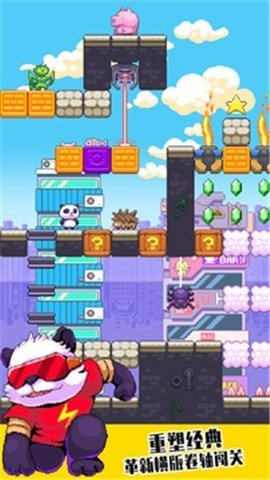 超级英雄熊猫是一款非常有趣好玩的卡通风闯关类手机游戏,这款游戏的画风实在是不错,操作也很舒服,像素风格的游戏画面设计,玩家要控制小熊猫开展一场有趣的冒险,多种模式可以选择,注意躲避各种风险,喜欢的玩家快来下载吧!!!