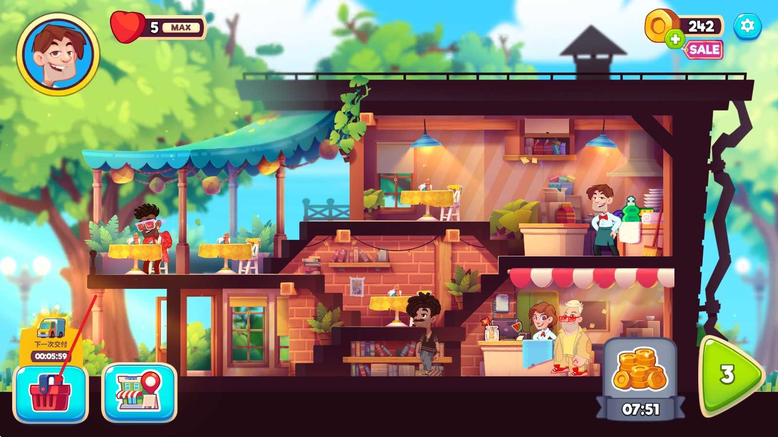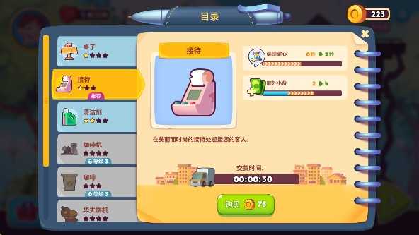 7. 别忘了点击左下角商店”,购买新设备或装饰,持续优化你的咖啡馆!