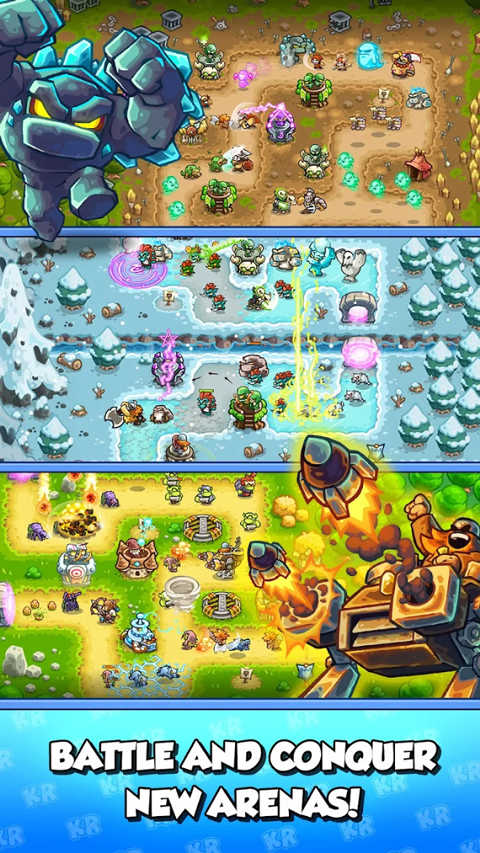 1、王国保卫战战略对决手机版游戏对局节奏迅速,每波敌人压力不同,使玩家在短时间内体验到塔防对抗的完整紧张感与冲击力。