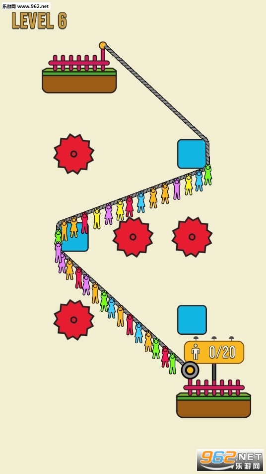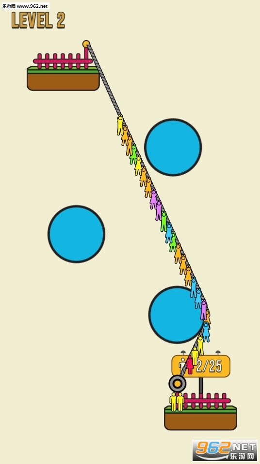 总体来说是一款非常不错的休闲闯关类的游戏,这款游戏的玩法和操作的方式都还是非常的简单的,玩家们通过操作你的手指去点击不同的地方让绳索相连,在小人们从绳索上滑下即可通关,喜欢的亲们赶紧下载吧。