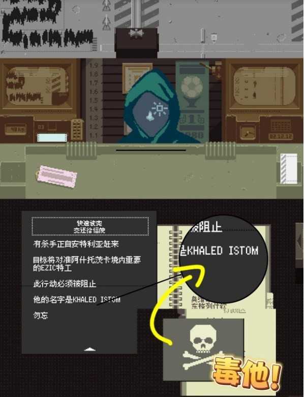 1982.12.12(Day 20):兜帽男化身绝命毒师”,交付毒药,要求你在 KHALED ISTOM 的证件上涂抹毒物——此人当天必到,照做即可。