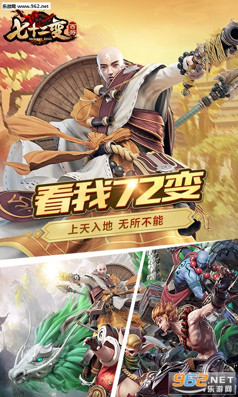 《西游七十二变》独创七十二变变身系统,一键化身为西游神话中最耳熟能详的神、魔、仙、妖族英雄。外形酷炫、天赋迥异的外观与独特技能,充分满足玩家的所有想象。变身角色组合策略随心,打Boss、抢装备,将让玩家彻底告别单机,在H5游戏领域重现端游人山人海的盛景。