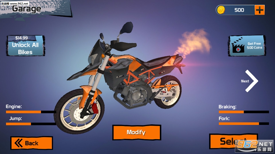 1、多种不同的酷炫摩托车进行进行选择驾驶,感受畅爽的驾驶乐趣;