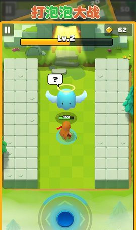1、你需要通过虚拟摇杆控制走位,利用手中的弓箭打到泡泡;