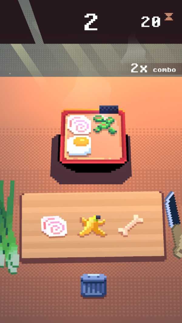 玩家可以建造一些拉面的材料,慢慢挖掘出新的食材,所有的食材都要添加到空碗中,最后变成美味的食物,帮助自己计算出最后的得分,避开一些低质量的成分,提高分数吧。