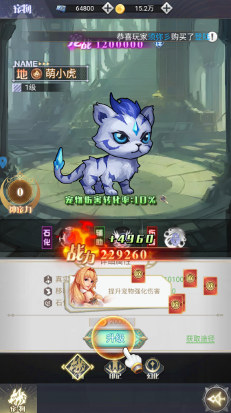 7. 在宠物界面投入资源升级,让伙伴快速成长,协同作战。