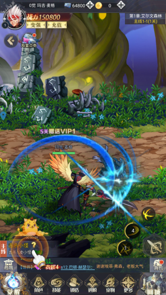 2. 进入游戏后角色将自动闯关,点击左下角主线任务”推进剧情。