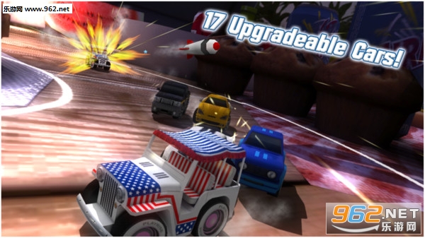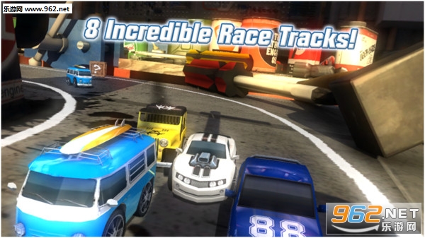 让各种各样的疯狂车辆竞争,在一个由桌面赛车场和超大尺寸障碍物构成的世界中互相争斗