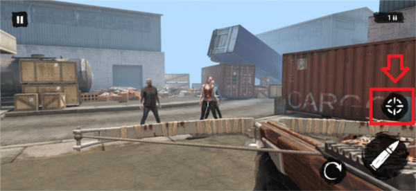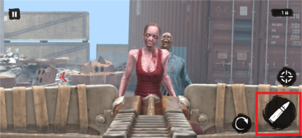2. 在大视角辅助下,对准僵尸后点击右下角射击按钮即可开火,操作直观流畅。