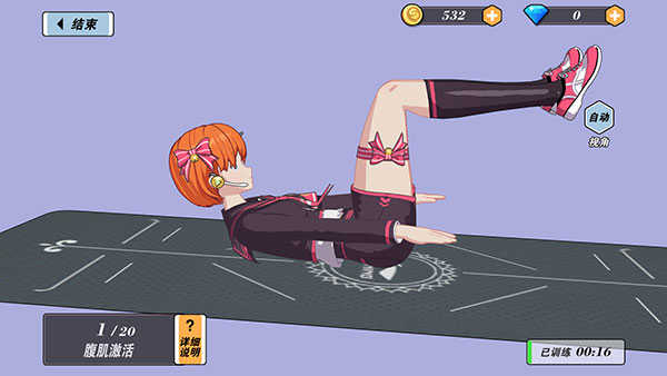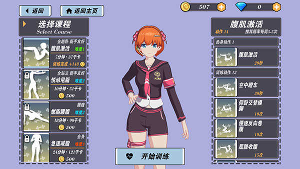 玩家可以通过完成健身来进行养成,解锁不同的教练、服装和课程。