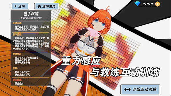 我的健身教练2是一款有着感应和交互元素的3D二次元健身游戏,该游戏不仅提供了类似主流健身软件的跟做健身模式,而且还提供依靠重力感应为主的互动健身模式,可以说是兼并了实用性与交互性。在此基础上,游戏还拓展出了养成激励玩法,玩家可以通过完成健身来进行养成,解锁不同的教练、服装和课程,这对于热爱运动的玩家们来说是一个非常棒的游戏。相对而言,我的健身教练2游戏的运动量都不算很大,十分钟左右就能做完的基础锻炼,而且游戏中所提供的跟做模式可以让玩家模仿游戏中的虚拟教练完成一些简单的健身训练,可以说这个模式非常适合那些想要在放松娱乐的同时得到身体锻炼的玩家。喜欢二次元又想健身的同学赶紧下载游戏来体验一下吧!