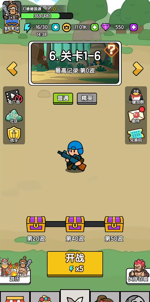 1、进入超幸运塔防游戏来到界面点击开战