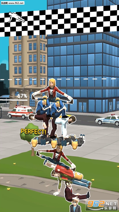 1、采用3D制作高清精细的场景与人物建模,以各种体操动作和物理现象来刁难玩家组合人塔。