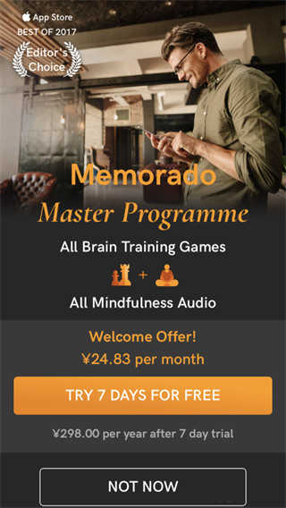 你完全可以免费使用。但是,如果你想要将进步速度提高74%(平均值),我们推荐Memorado高级版。当你是高级会员期间,高级版为你提供真正个性化、每天更新的训练计划;这些训练经过优化,可以使训练效果达到最佳。此外,高级版可以让你无限制地访问所有游戏、测试和数据。