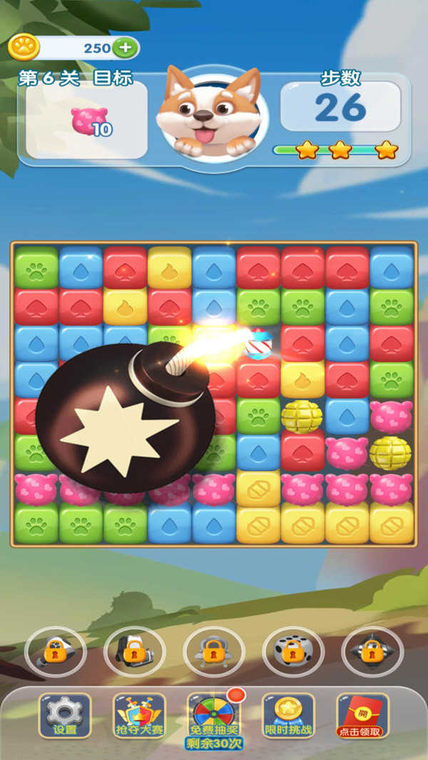 自由设计的关卡挑战可以让你释放你的创造力,并消除相邻的目标。