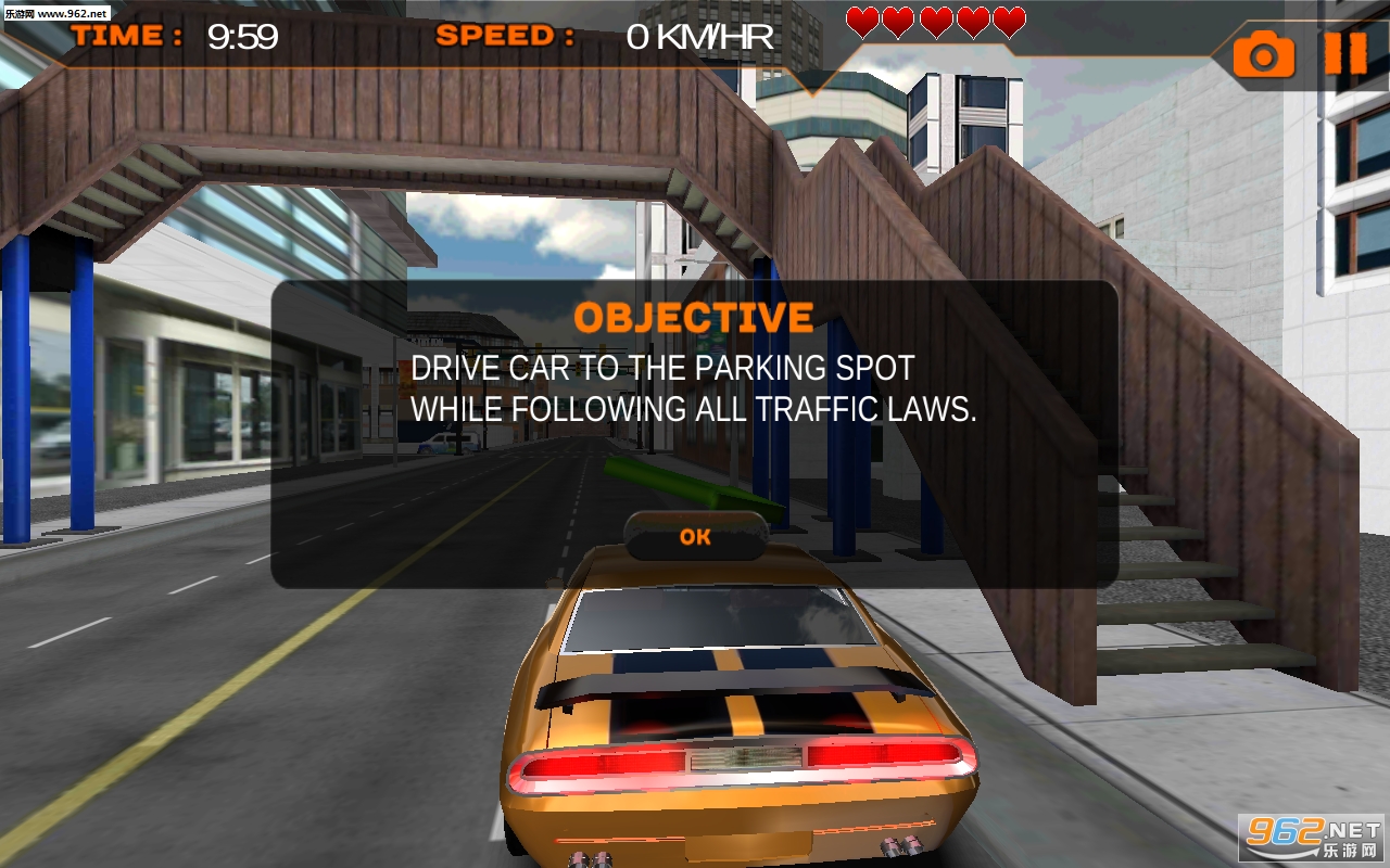 游戏开始通过驾驶教练驾驶课。