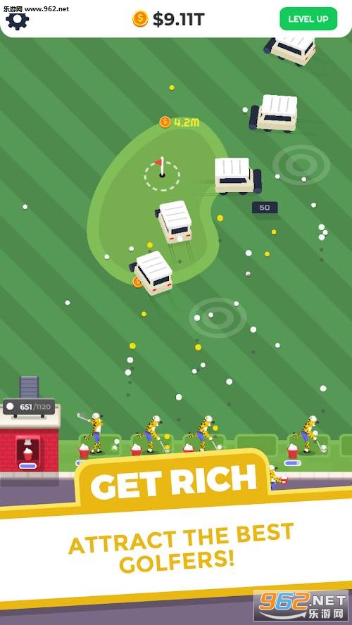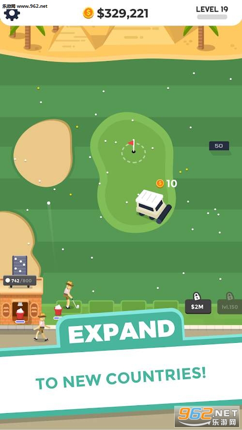 非常有意思的模拟经营类手游,操作非常的轻松简单,离线开启放置挂机功能也能不断赚钱,升级改造高尔夫球场,不断推出各种新颖活动来吸引这些高端顾客,将自己的公司做大做强。