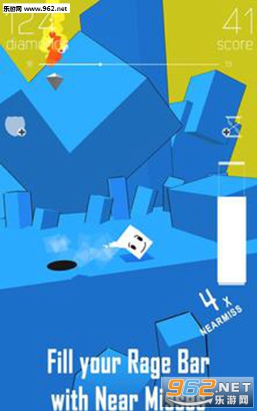 在这个小清新般的游戏界面中玩家将会化身一块小方块角色,每一款小方块都有不同的外观以及属性,玩家可以控制方块敏捷的躲避导弹的攻击,收集一些增幅道具来保护自己。