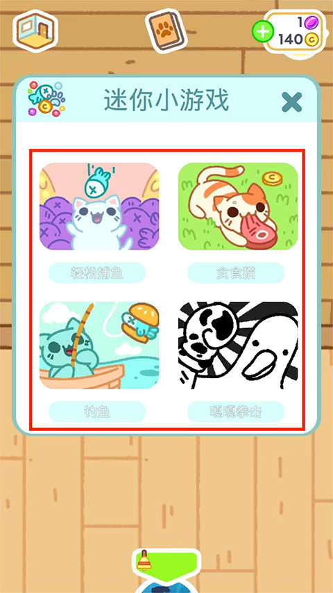 8、进入相册界面,选择【迷你小游戏】,这里有四种小游戏可以体验,并且还能赚钱额外的金币,