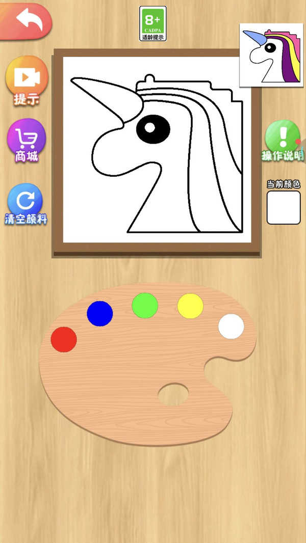 1. 观察白板上的图案轮廓,从丰富的颜料盘中挑选心仪色彩,开启你的专属创作之旅。