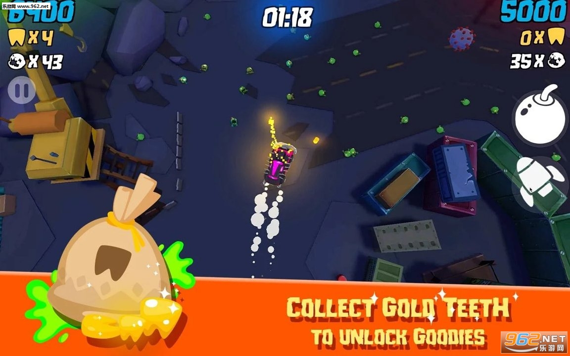 收集你杀死访问更酷汽车,摩托车,卡车和更多的僵尸的金牙。