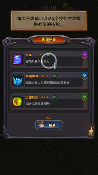 3. 每次升级时,系统将提供三个随机技能供你自由选择,打造专属战斗风格。