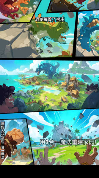 《三合镇》是一款融合经典三消玩法与轻松建造元素的休闲手游,故事设定在远古石器时代:一场突如其来的恐龙侵袭摧毁了宁静的村庄,而你将肩负起重建家园的重任!通过合成植物、解锁建筑、规划布局,一步步将废墟变回生机勃勃的小镇。游戏节奏舒缓、操作简单,只需几分钟即可掌握核心玩法,无论是学生、上班族还是长辈,都能轻松上手,享受无压力的治愈时光。