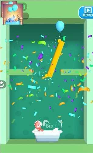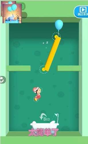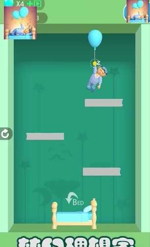 2.在这里,玩家可以轻松地进行冒险,让小人准确地跌落到床上,然后成功通过关卡。