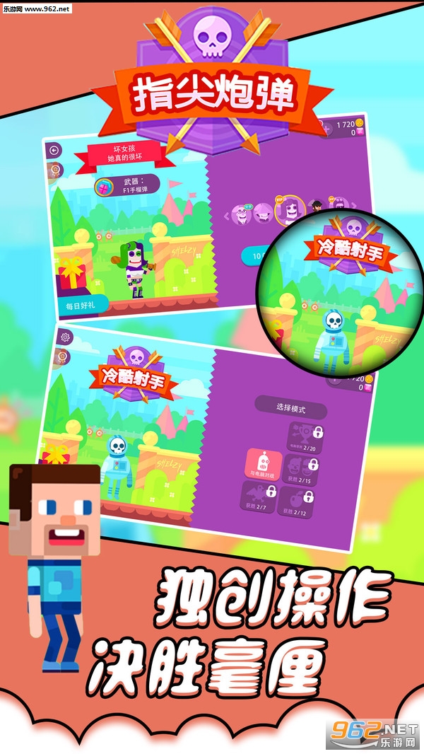 指尖炮弹是一款画风滑稽的趣味休闲射箭游戏。