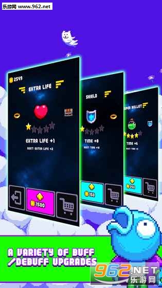 上下左右移动躲避攻击,收集星星探索新地图,升级Buff解锁角色打败大BOSS!