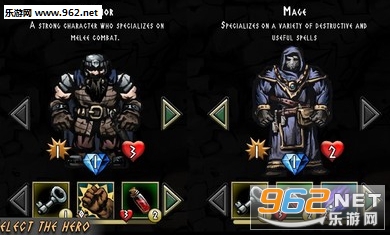 一款有趣的休闲地牢游戏,游戏中你可以从两名不同的英雄中选择一名开始游戏,游戏的操作简单容易上手,丰富的物品和技能可以使用,推荐给喜欢地牢冒险游戏的玩家。