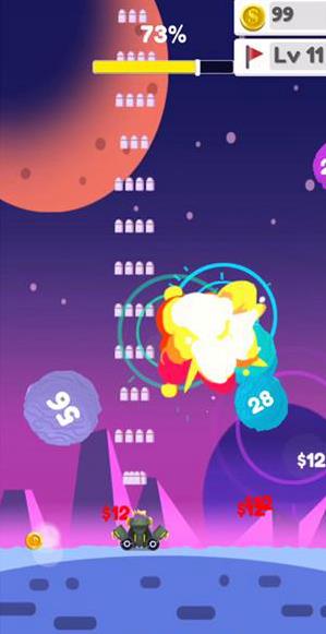 《Moon Blast安卓版》是一款非常好玩的射击类闯关消除手游,游戏有着非常精致炫酷的画面,操控射击炮台不断的向上射击,消除各种各样的外太空病毒,保护我们的地球母亲不受侵犯,收集钻石和金币不断升级装备,运用更强大火力的战机消灭它们。