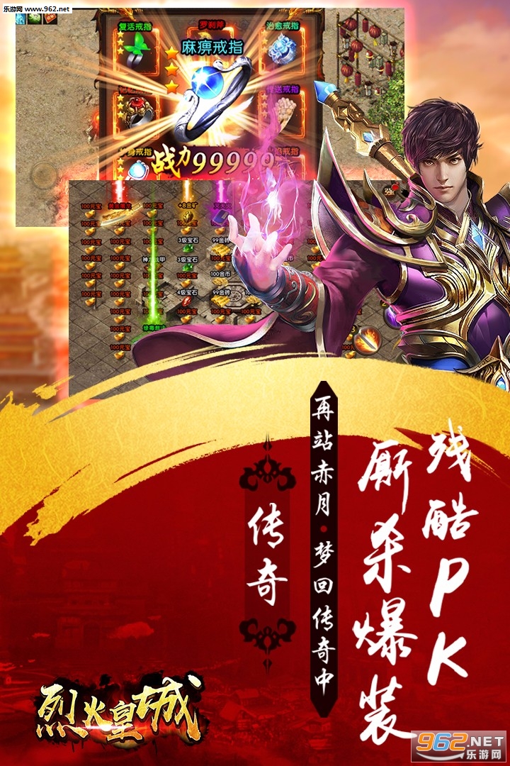 《烈火皇城》作为业界良心的正版绿色手游,拒绝夸张的数值,还原经典的味道,砍怪掉极品,杀人爆宝物,全民攻沙,所有经典元素全继承。精美的画面,更多福利,更合理设定,更流畅操作,打造紧张的加速刺激感!同时开创跨多服大皇城PK玩法,更稳定千人同屏乱战,更良心为玩家的正版手游大作!拿起武器热血奋战吧,延续昔日兄弟之情,移动时代我们再续传奇。