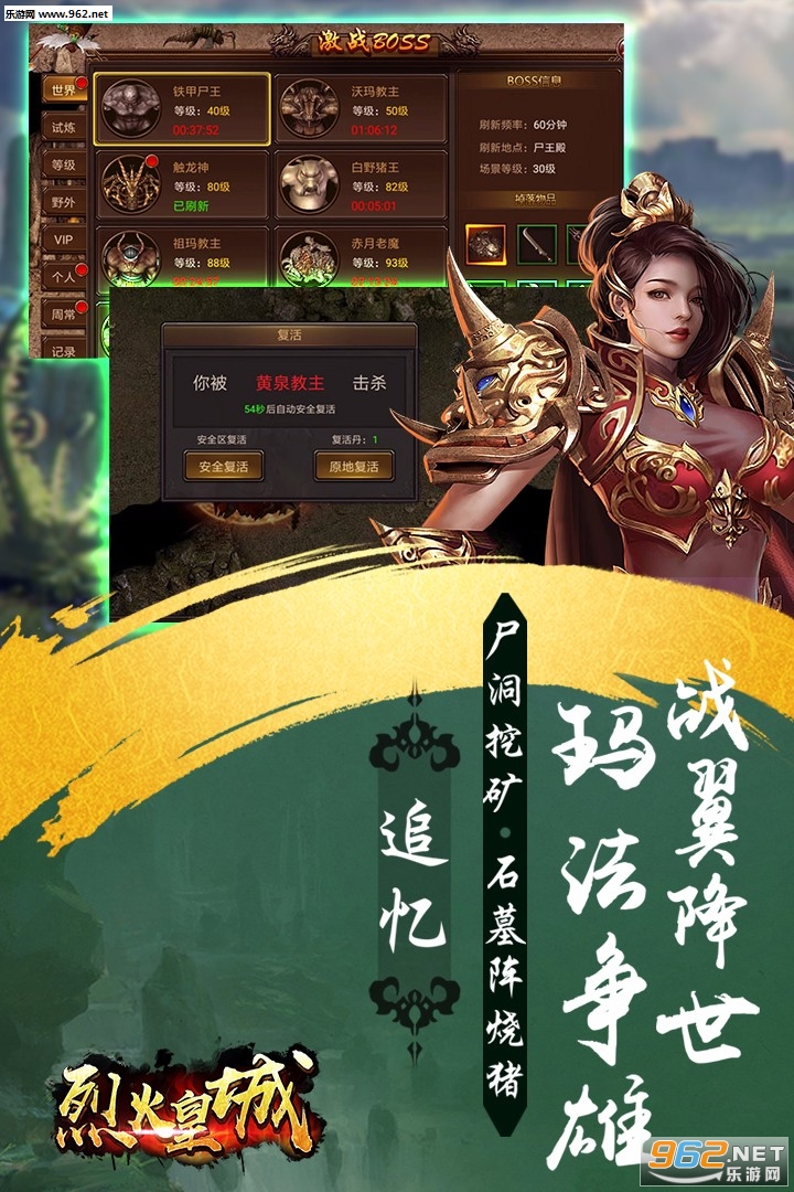 传承76经典设置,续写盟重新篇章!经典的战法道三职业,复古的游戏场景,热闹非凡的安全区,菜鸟上路必砍的鸡、羊、猪洞,以及沃玛教主、赤炎魔龙等,《烈焰龙城》带你重新回味经典、再战沙城。