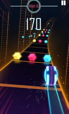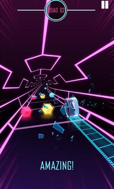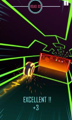 向左和向右滑动以控制沿着充满彩色障碍物的道路的滚轮。确保它只能击中相同颜色的立方体。