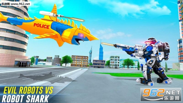 《机器人鲨鱼袭击安卓版》这是一款充满未来气息的动作射击类手游,游戏中玩家将扮演一位能力超强的机器人,你有两种形态可以随便切换,可以变换成鲨鱼也可以变换成机甲英雄,在城市中守卫着城市的安宁,打击着各种城市入侵者。