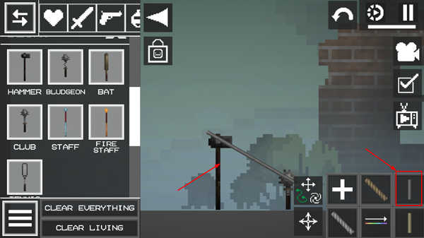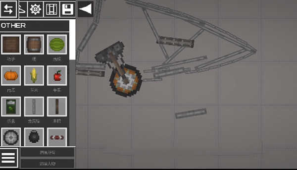 2、点击左上角菜单按钮,从道具库中拖拽两个可连接的物品放置在地面;