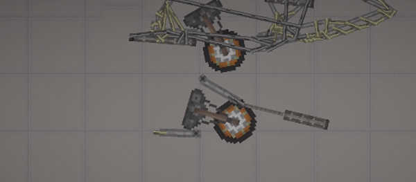 1、先制作起落架:用轮胎和引擎连接铁块,构成可开合的起落结构(前后起落架均可复用此设计);