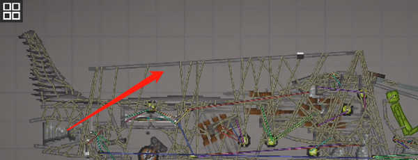 3、为防止结构松散,务必在机头中央添加一根长铁块作为支柱,并将其属性设为无重力、无碰撞”,再连接到外壳;