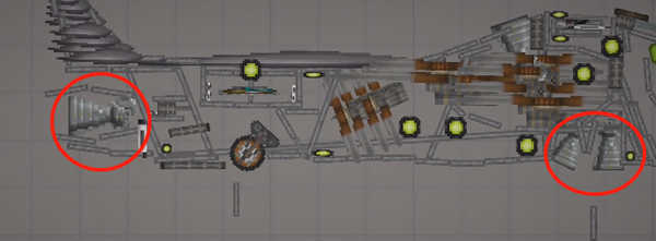 6、注意:游戏中的机翼无法提供升力!需在重心附近设置主引擎,并将螺旋桨设为无重力、无碰撞”状态,作为核心动力源;