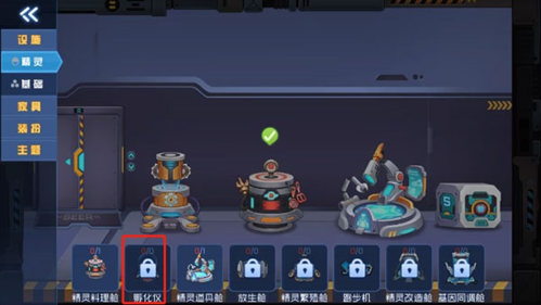 (2)设施中分为精灵和基础,孵化器是属于精灵道具,因此孵化器的位置在设施中。制作设施需要用到指定的材料,并且需要解锁军衔等级才行解锁。制作材料可以通过课外采集、任务奖励、基地制作等方式获取,由于获取方式太多就不过多介绍。军衔可以通过在星球收集到的星能提升,不知道如果收集的玩家可以查看一下攻略。