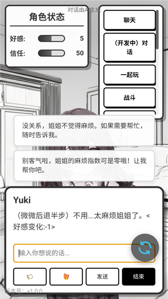 4.根据你的行为可以影响Yuki的好感度以及情绪