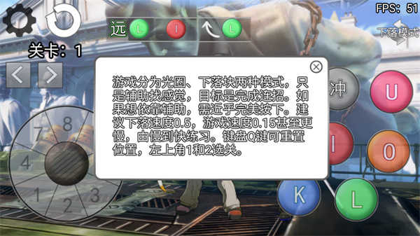 3、作者也考虑到格斗小白的不适应,做出了类似于音游的便于玩家理解的连招教学。