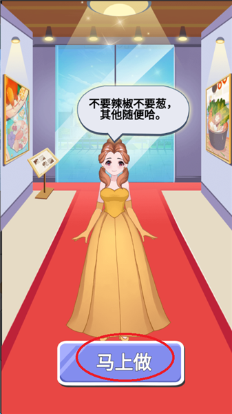 6、注意评委的这句话,避免制作的菜肴中拥有辣椒和葱,随后点击屏幕下方的马上做”就可以进行任务了。