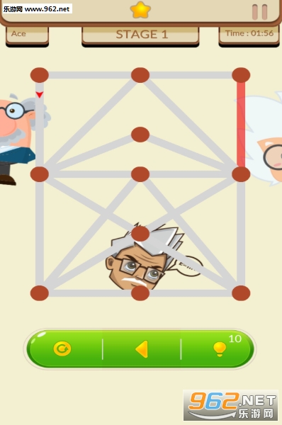 2、而玩家就是用手指来控制线条,记住千万不能松开,不然就算作你这一笔已经结束了,要是你没有将所有点连接起来,那么游戏也就结束了;